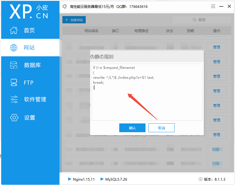 - 在输入框中填入以下 Nginx 规则: